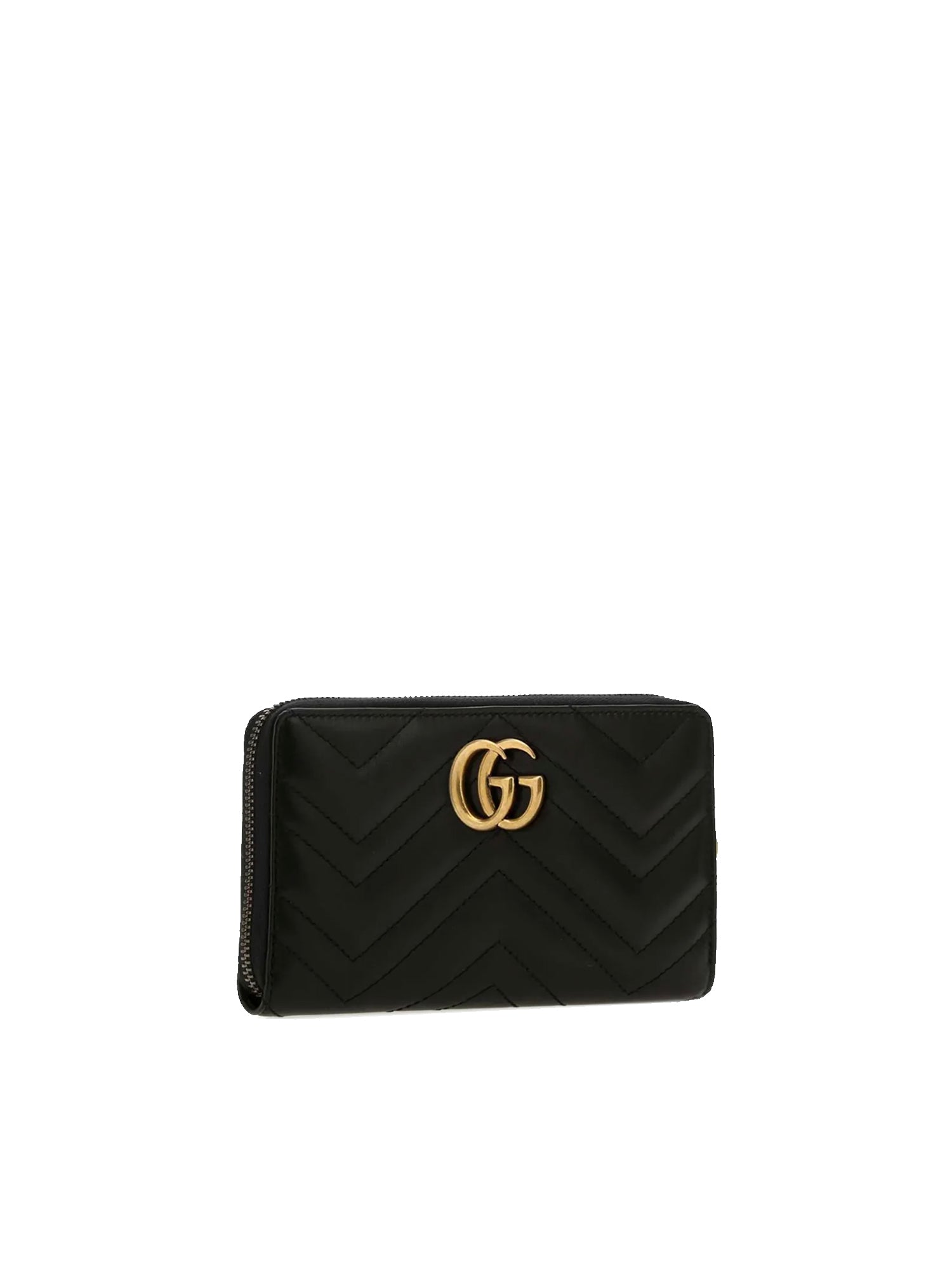 -Made of quilted leather with a chevron pattern and Interlocking G on the back -Top zip closure -Double G on the front -Dimensions: 19 x 10.5 x 2 cm -Made in Italy -Color: Black