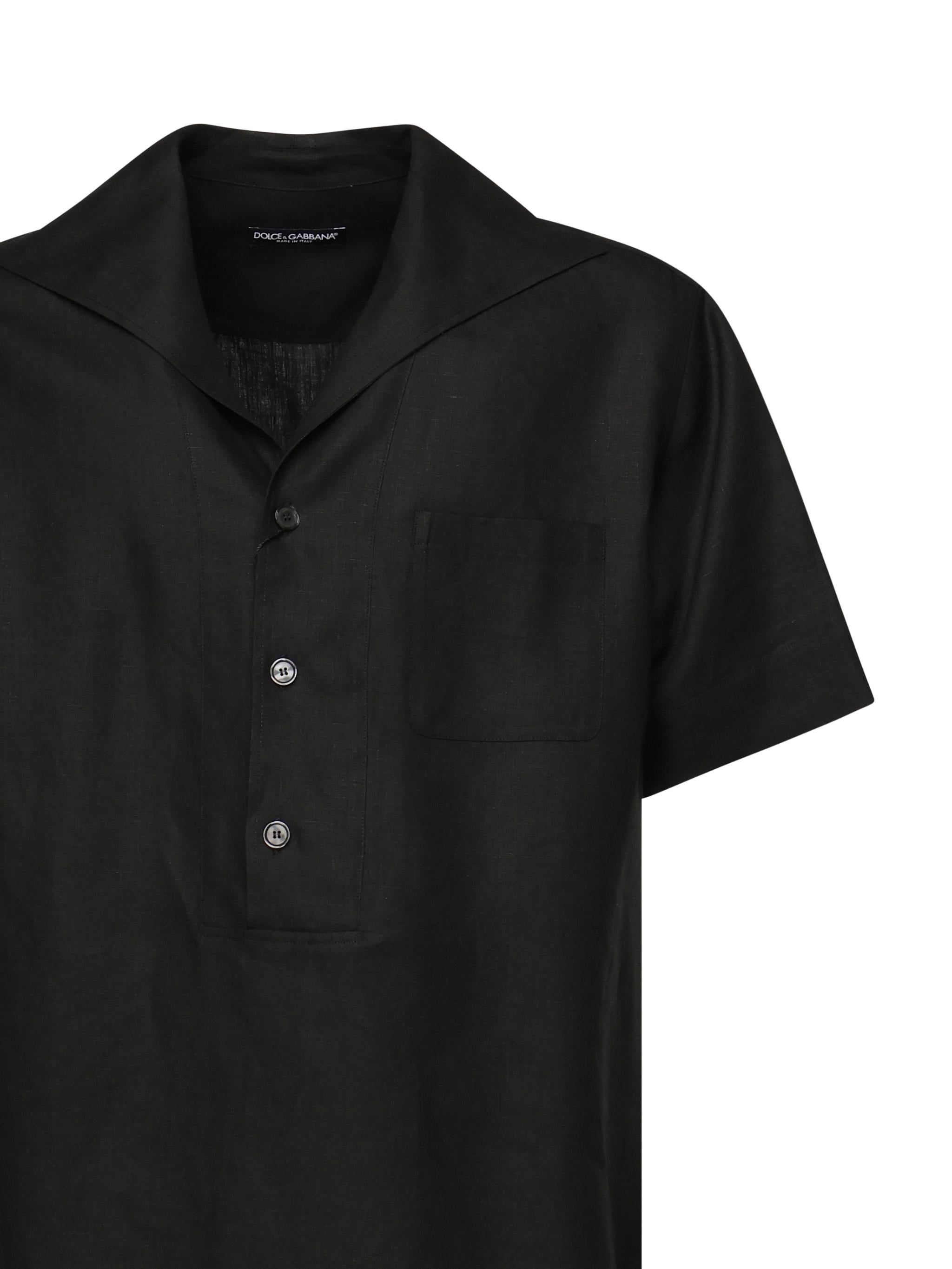 -Oversized three-button short-sleeved linen shirt with short sleeves