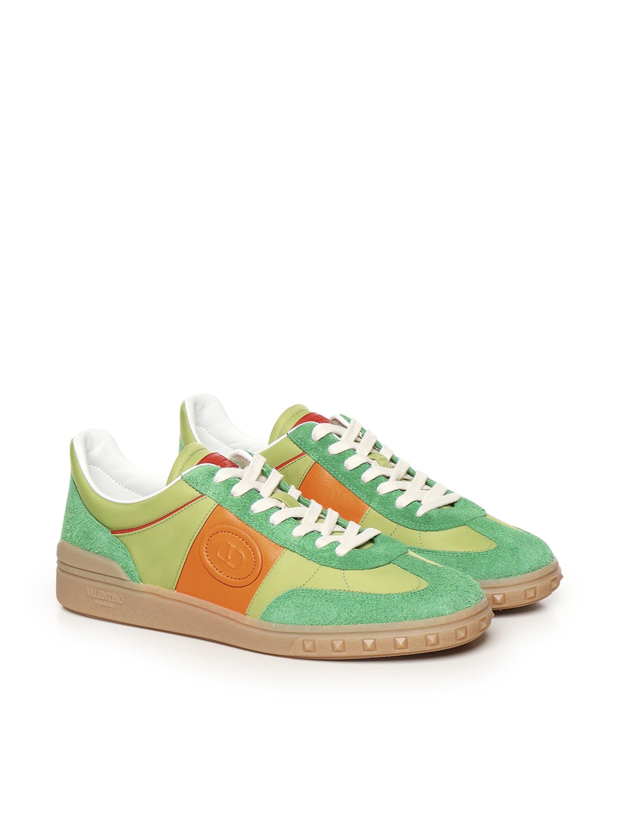-Sneaker Upvillage in crosta con banda in vitello nappato-Patch in pelle con dettaglio VLogo Signature
