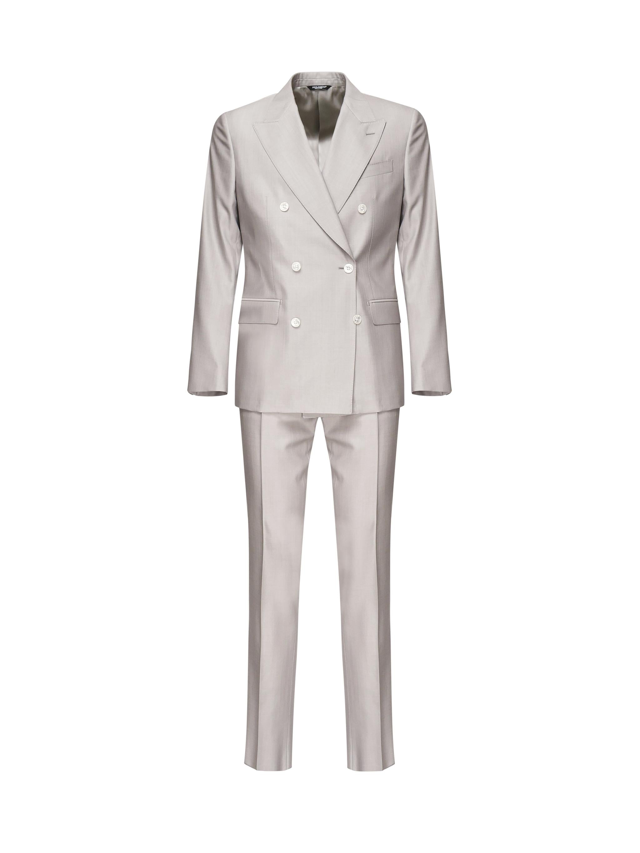 -Giacca doppiopetto con cinque bottoni-Pantalone con tasche anteriori alla francese