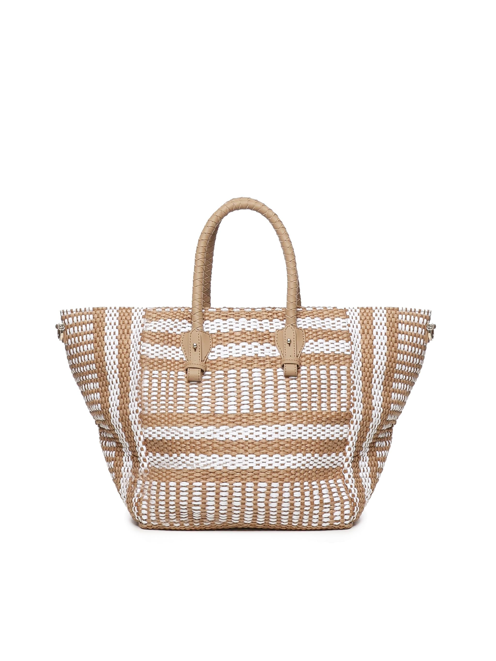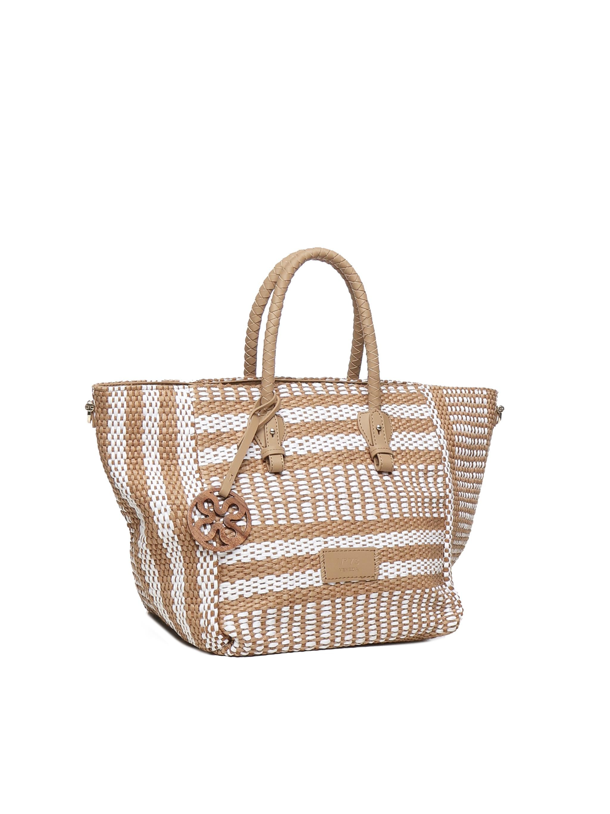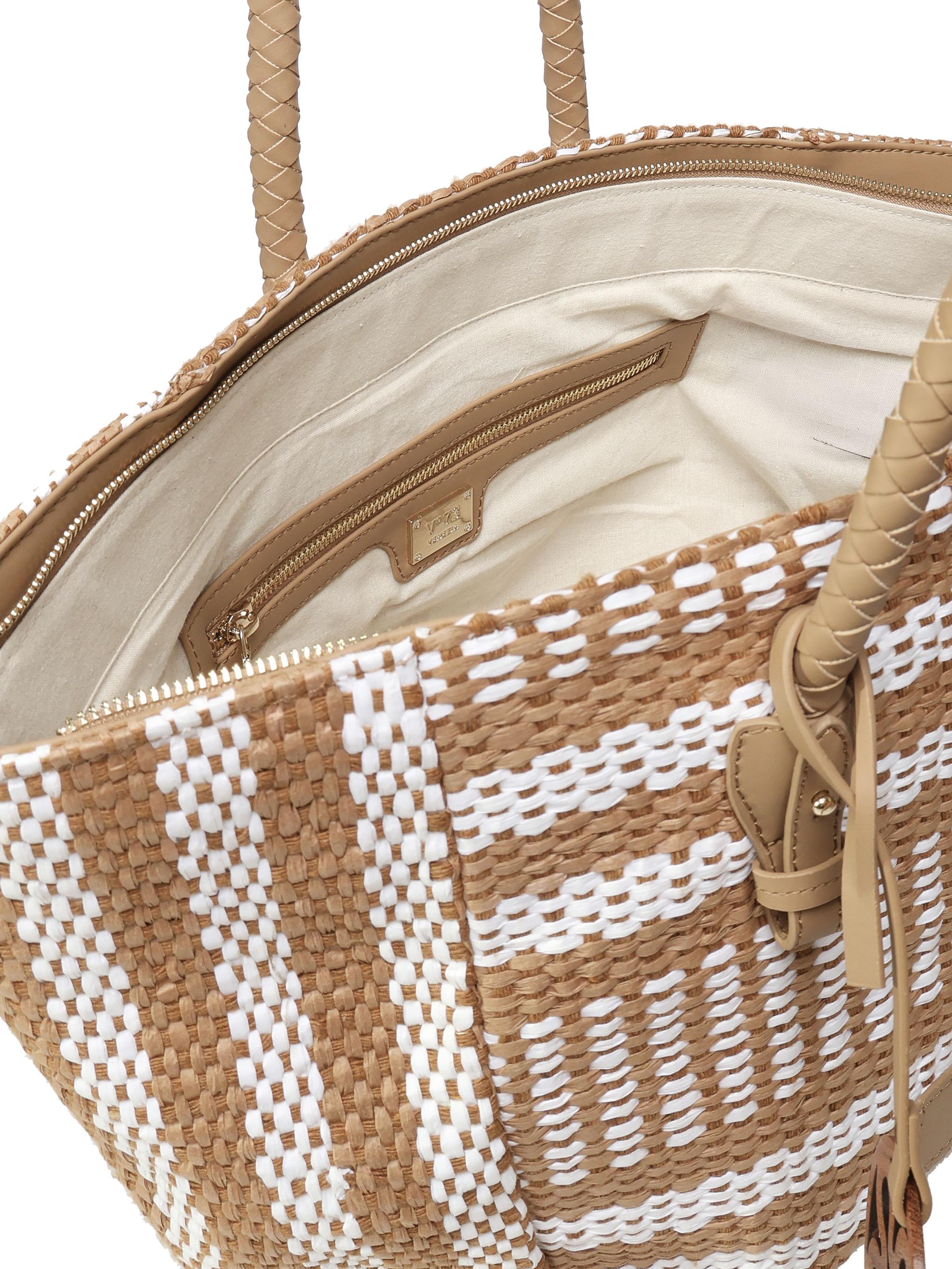 -Shopping bag realizzata in materiale sintetico intrecciato-Patch con logo